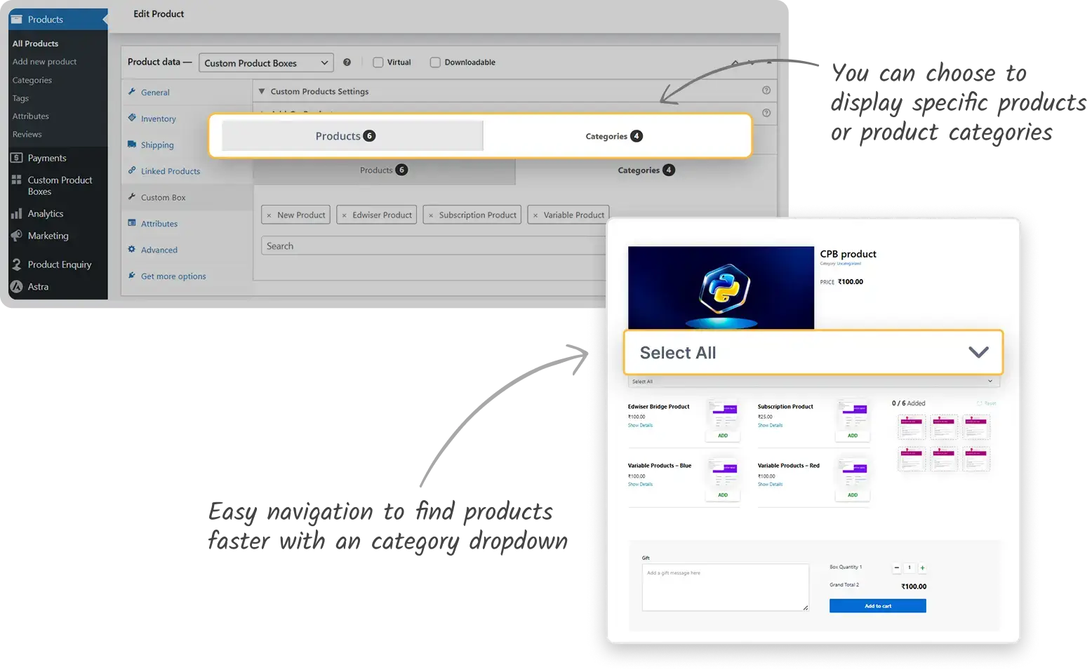 Give your customers the option to choose from existing product bundles or to mix and match products to create new ones.